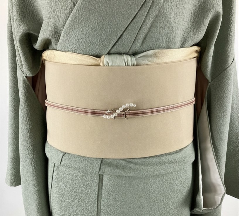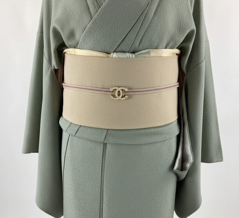 【①ジュエリーのブローチを使った綺麗帯留め】