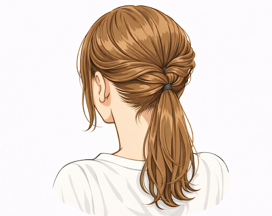 - おろしてる髪の毛を巻き込まないように結ぶと綺麗にまとまります。