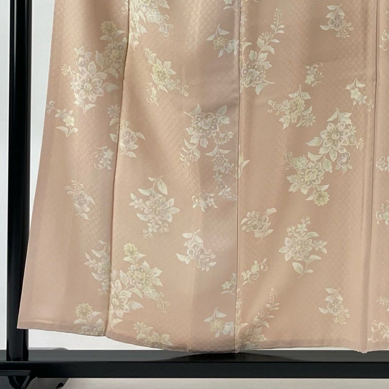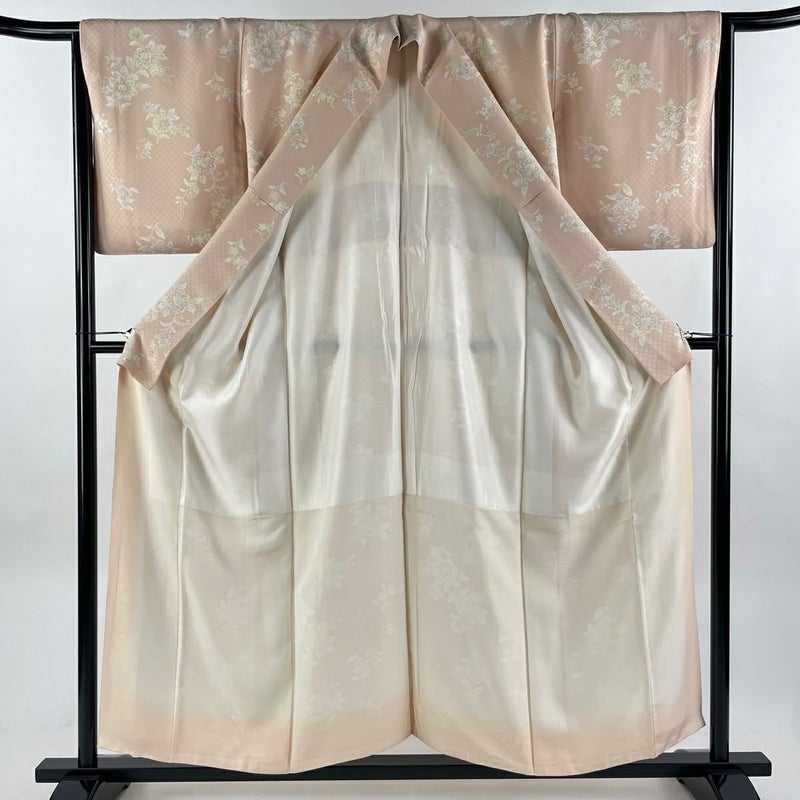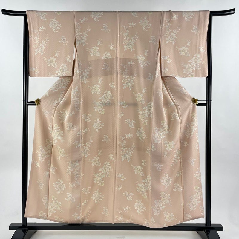 【小紋】 赤系 ピンクベージュ 名品 C 約150cm~約159cm 裄丈63cm-64cm (M)size 袖丈48cm -3980 二万以下