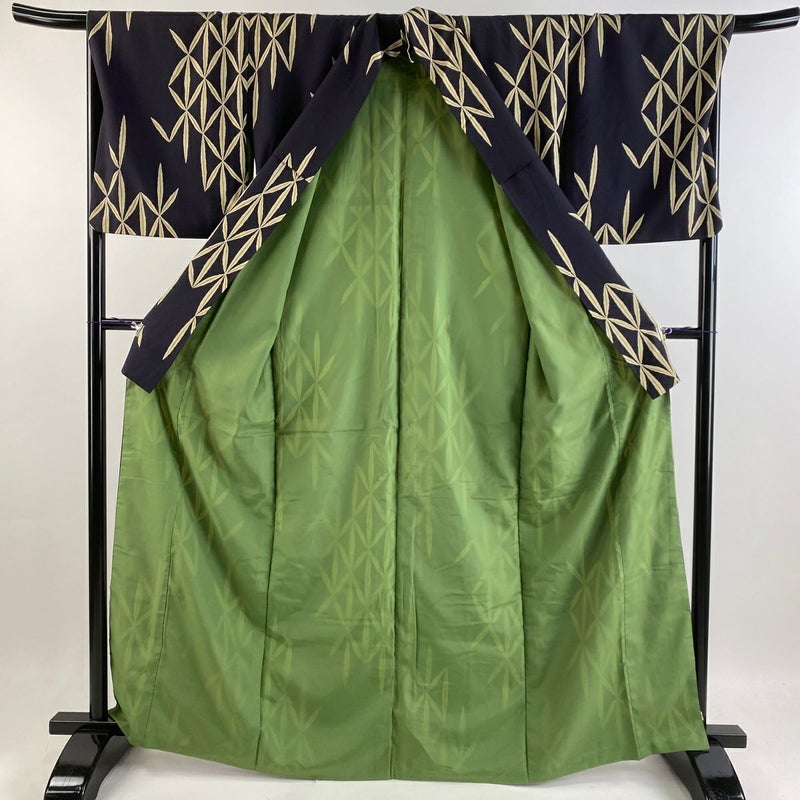 【着物ランク】優品 【素材】化繊 【身丈】約165cm 【裄丈】約69cm 【袖丈】約49.5cm 【袖幅】約34.5cm 【前幅】約24.5cm 【後幅】約29.5cm 【サイズ】L 【着物仕立て】袷 【着用時期】10~5月 【状態ランク】ランクB 【着物着用シーン】気軽なパーティー、観劇、食事会、正月、気軽なお茶会、街着