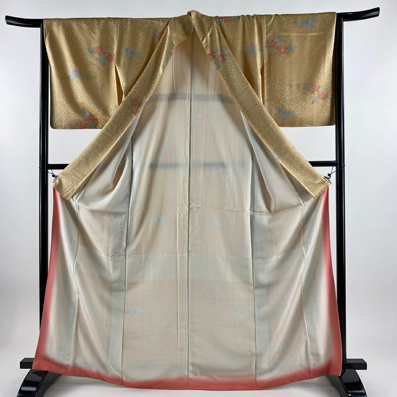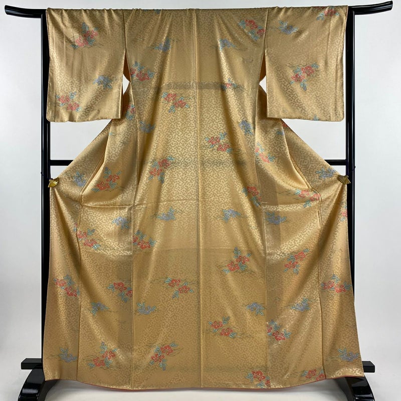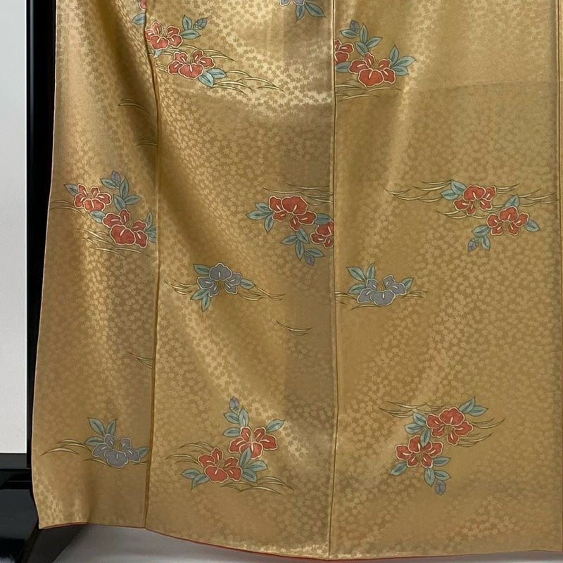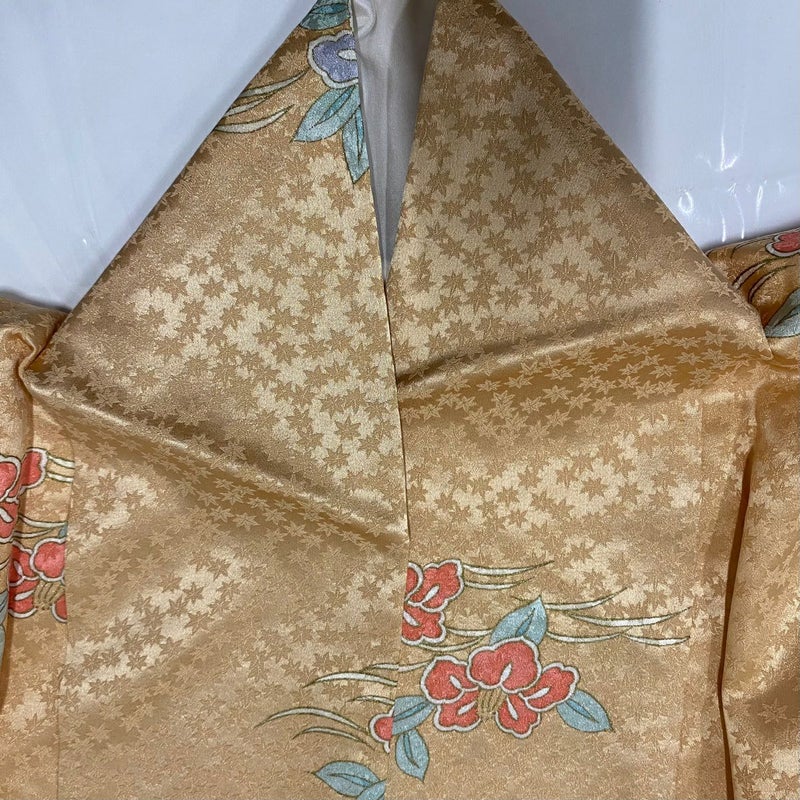 【着物ランク】優品 【素材】正絹 【身丈】約167cm 【裄丈】約65.5cm 【袖丈】約51cm 【袖幅】約34cm 【前幅】約25cm 【後幅】約30cm 【サイズ】M 【着物仕立て】袷 【着用時期】10~5月 【状態ランク】ランクB 【着物着用シーン】気軽なパーティー、観劇、食事会、正月、気軽なお茶会、街着