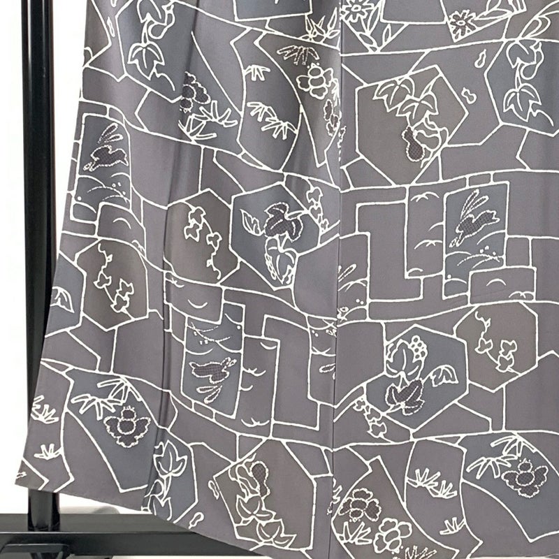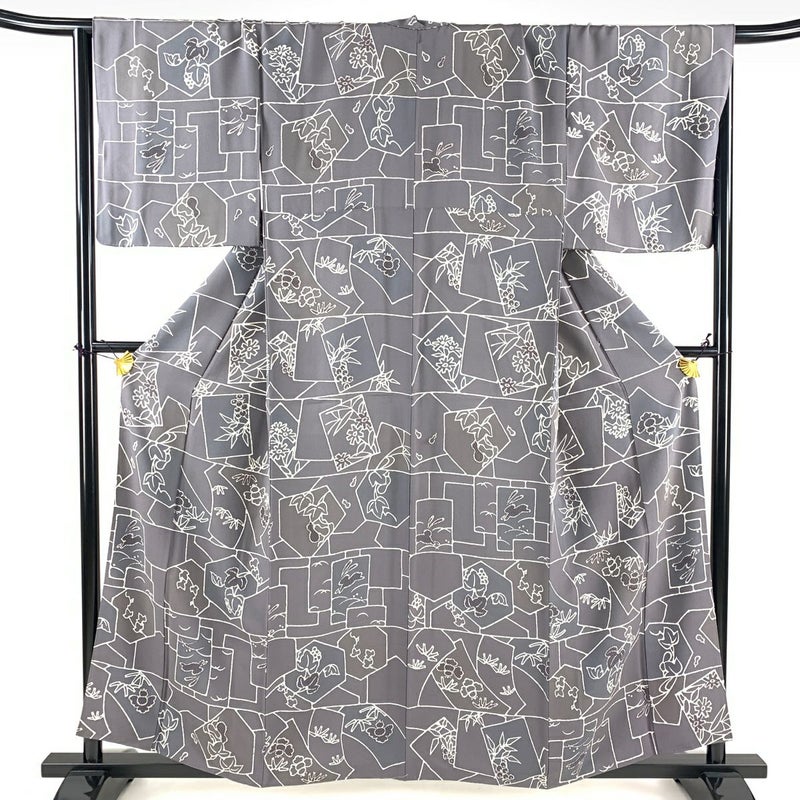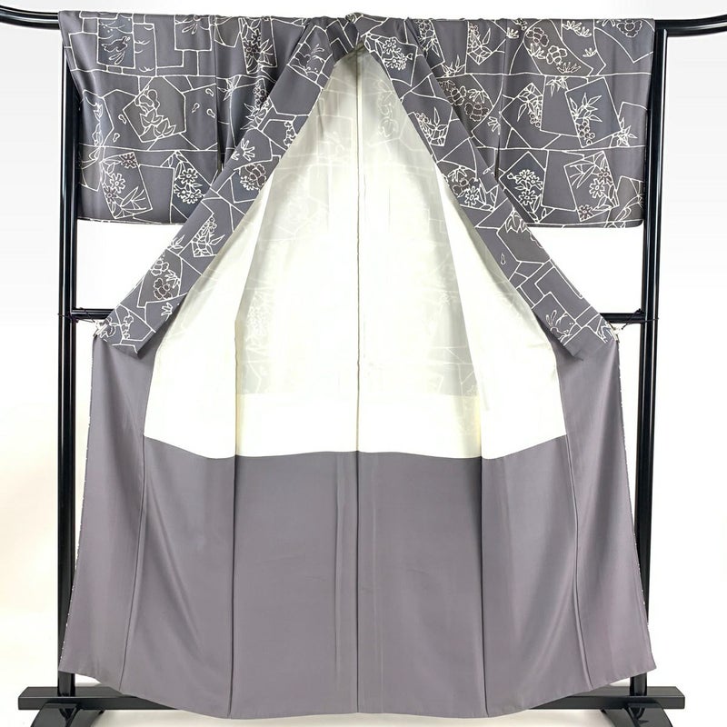 【小紋】 灰色系 灰紫 名品 B 約150cm~約159cm 裄丈67cm-68cm (L)size 袖丈47cm -3980 二万以下