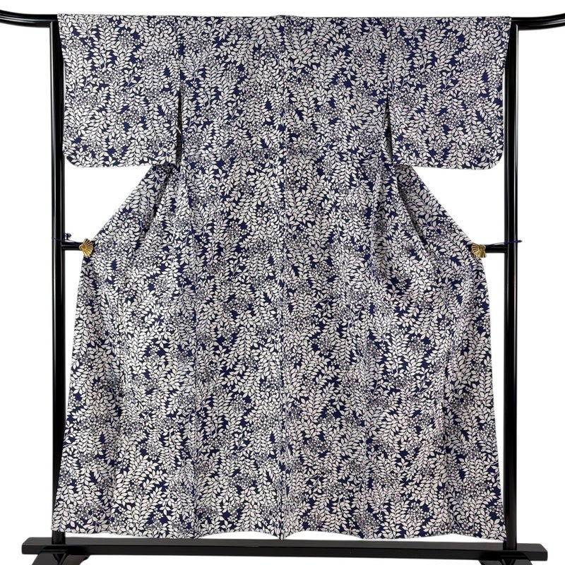 【着物ランク】秀品 【素材】正絹 【身丈】約153.5cm 【裄丈】約64.5cm 【袖丈】約45.5cm 【袖幅】約33cm 【前幅】約26cm 【後幅】約30.5cm 【サイズ】M 【着物仕立て】単衣 【着用時期】6/9月 【状態ランク】ランクB 【着物着用シーン】気軽なパーティー、観劇、食事会、正月、気軽なお茶会、街着