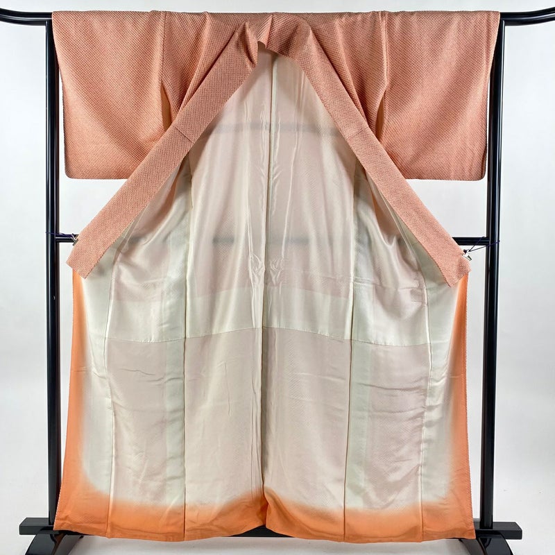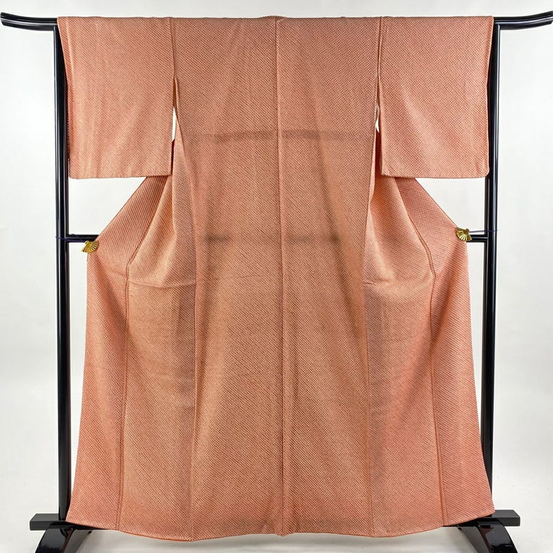 【小紋】 赤系 薄オレンジ 優品 A 約160cm~約169cm 裄丈65cm M 袖丈50cm-60cm 4000-7980 美品 二万以下