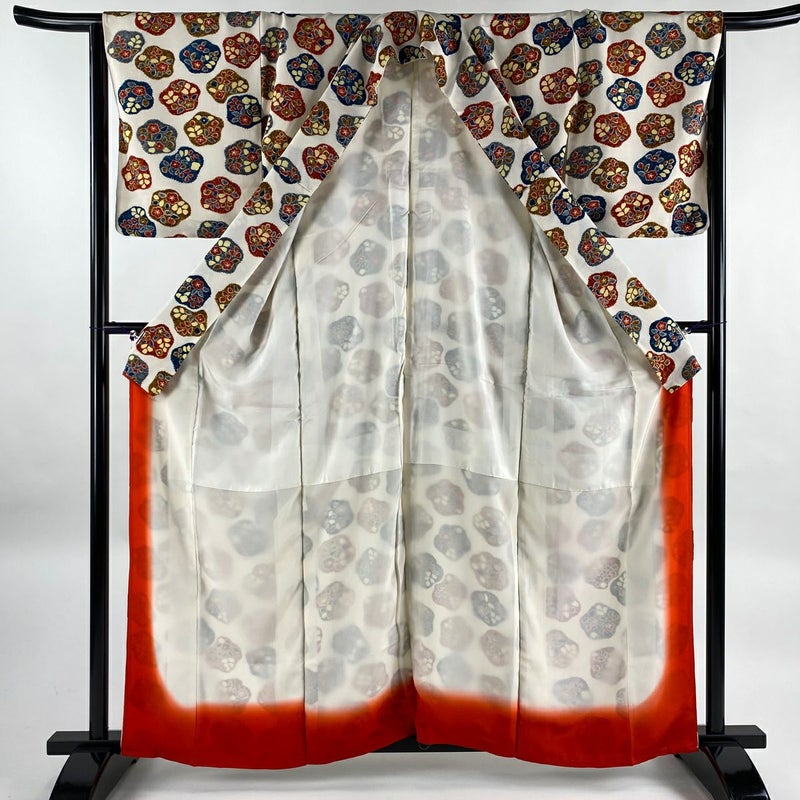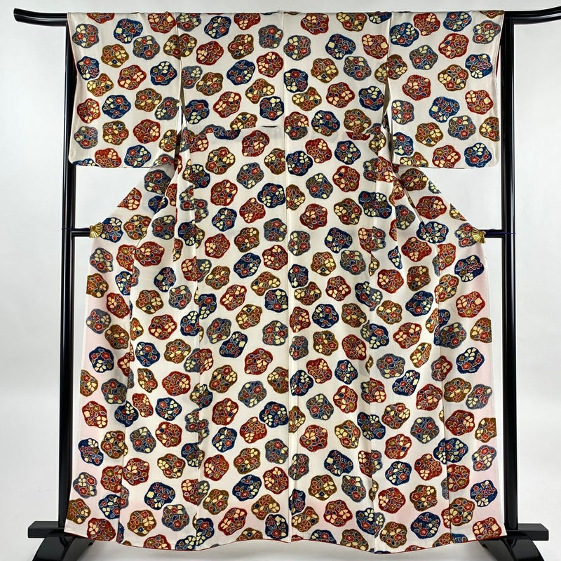 【小紋】 白系 クリーム 優品 A 約160cm~約169cm 裄丈65cm M 袖丈48cm 4000-7980 美品 二万以下