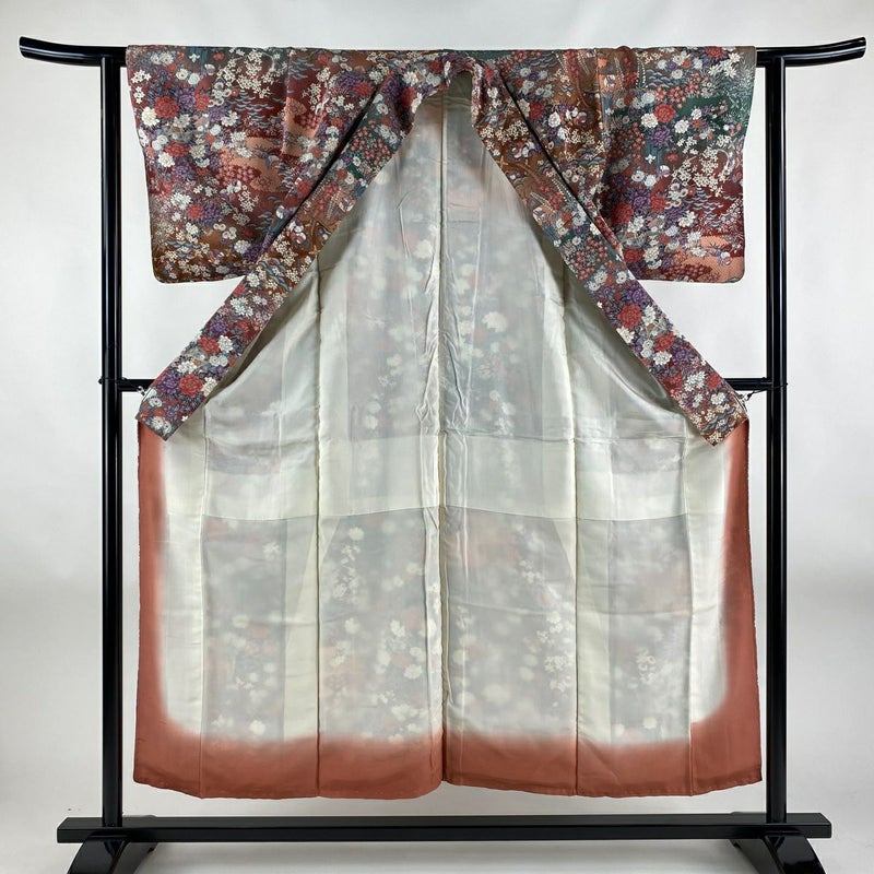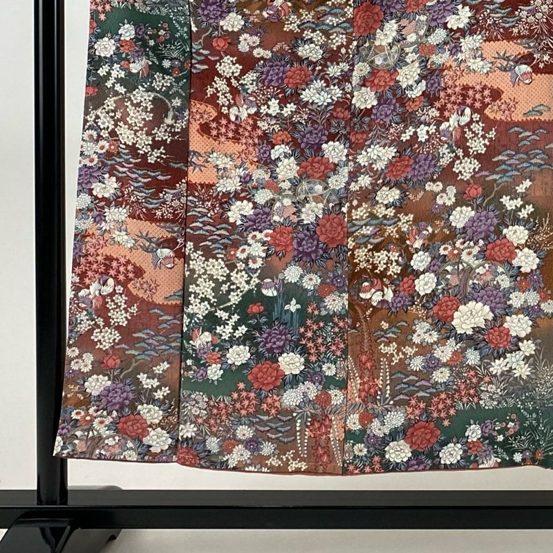 【着物ランク】優品 【素材】正絹 【身丈】約152cm 【裄丈】約62cm 【袖丈】約47.5cm 【袖幅】約32cm 【前幅】約22cm 【後幅】約28cm 【サイズ】S 【着物仕立て】袷 【着用時期】10~5月 【状態ランク】ランクA 【着物着用シーン】気軽なパーティー、観劇、食事会、正月、気軽なお茶会、街着