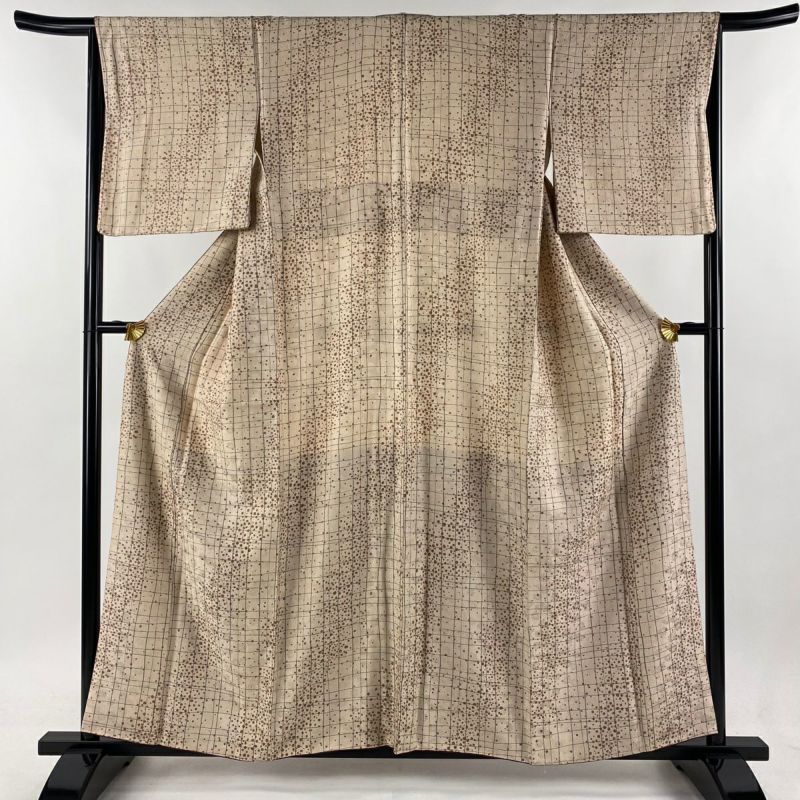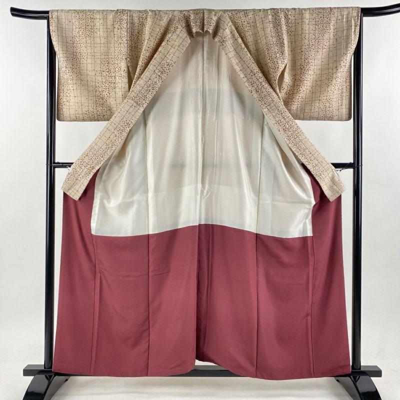 【小紋】 赤系 ピンクベージュ 名品 B 約150cm~約159cm 裄丈65cm (M)size 袖丈48cm 9990-29990 五万以下