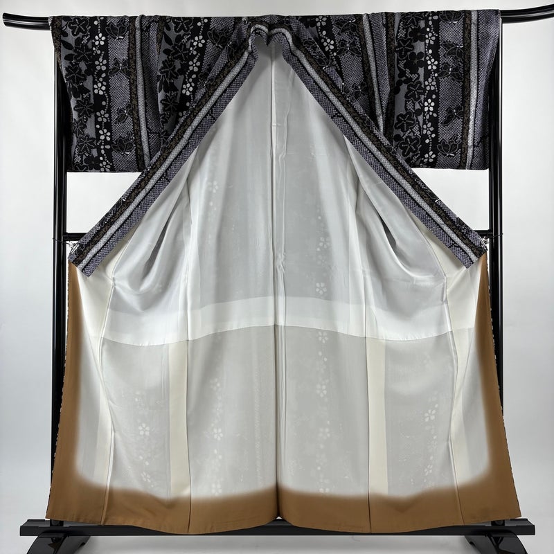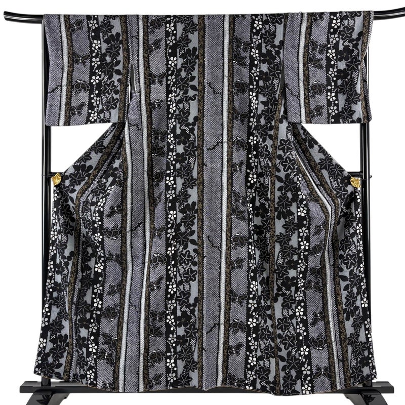 【小紋】 灰色系 黒灰 秀品 A 約160cm~約169cm 裄丈67cm-68cm (L)size 袖丈49cm 7990-9980 美品 二万以下