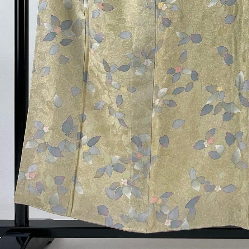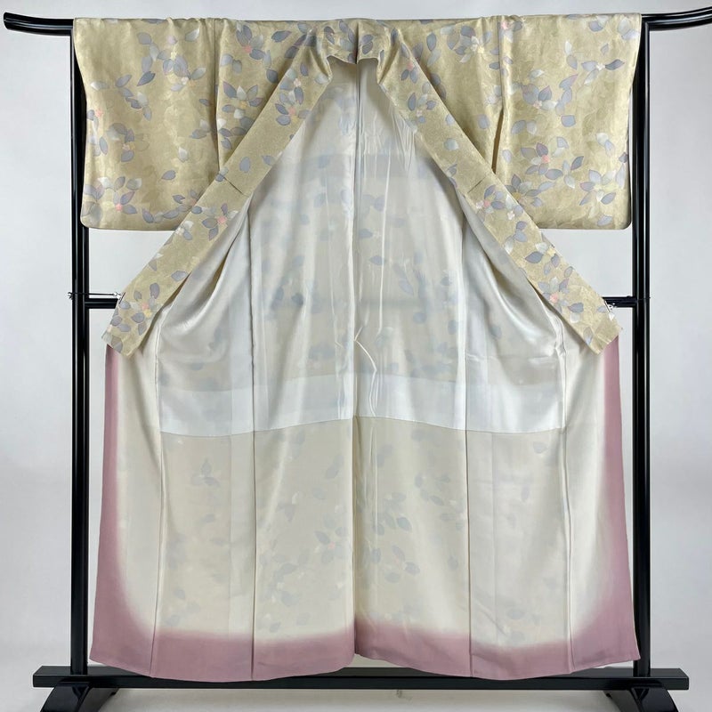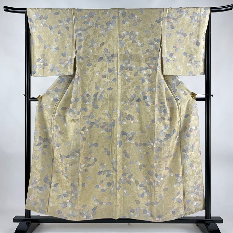 【着物ランク】優品 【素材】正絹 【身丈】約156cm 【裄丈】約66cm 【袖丈】約50cm 【袖幅】約33cm 【前幅】約23.5cm 【後幅】約30cm 【サイズ】M 【着物仕立て】袷 【着用時期】10~5月 【状態ランク】ランクA 【着物着用シーン】気軽なパーティー、観劇、食事会、正月、気軽なお茶会、街着