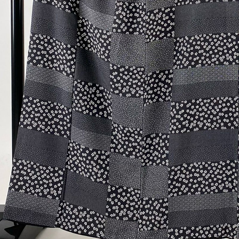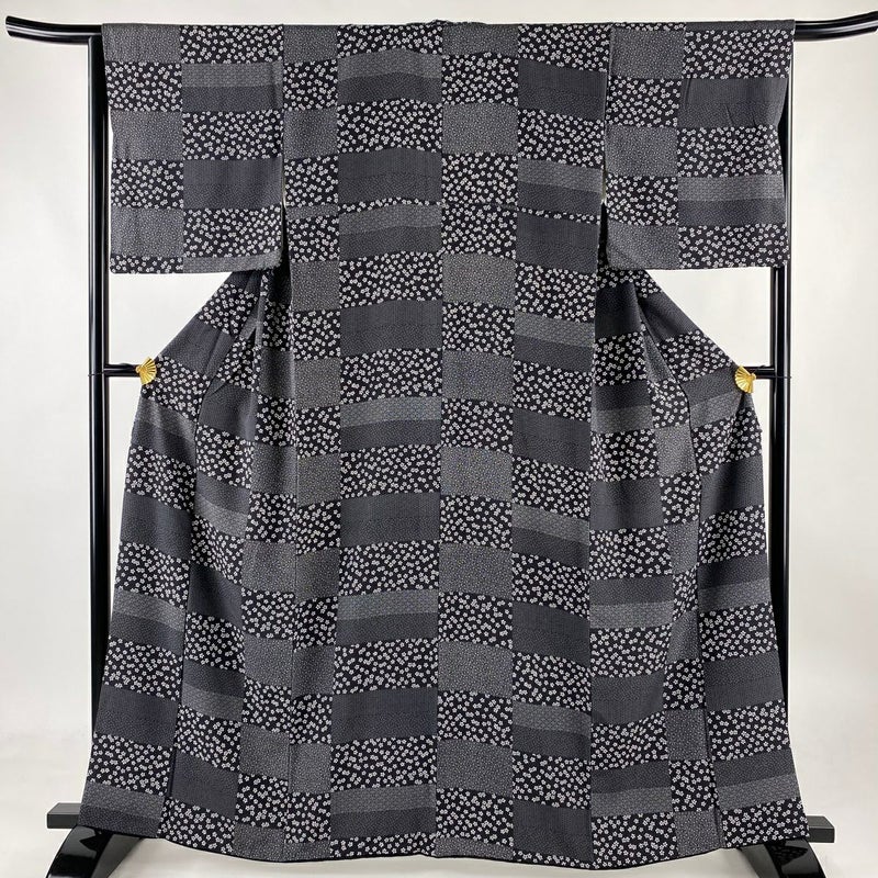【小紋】 黒系 黒 秀品 B 約160cm~約169cm 裄丈65cm (M)size 袖丈50cm-60cm -3980 二万以下