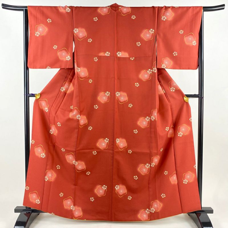 【小紋】 赤系 茜色 優品 B 約160cm~約169cm 裄丈65cm (M)size 袖丈48cm -3980 二万以下