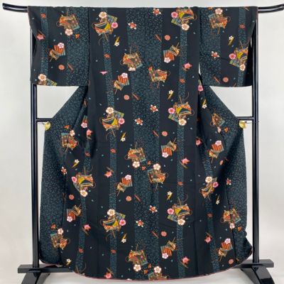 【着物ランク】優品 【素材】化繊 【身丈】約163cm 【裄丈】約65.5cm 【袖丈】約48.5cm 【袖幅】約33.5cm 【前幅】約24.5cm 【後幅】約30cm 【サイズ】M 【着物仕立て】袷 【着用時期】10~5月 【状態ランク】ランクB 【着物着用シーン】気軽なパーティー、観劇、食事会、正月、気軽なお茶会、街着