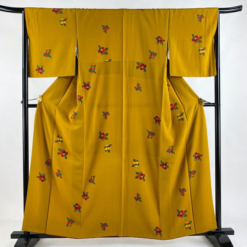 【小紋】 黄色系 山吹茶色 優品 B 約150cm~約159cm 裄丈63cm-64cm (M)size 袖丈48cm -3980 二万以下