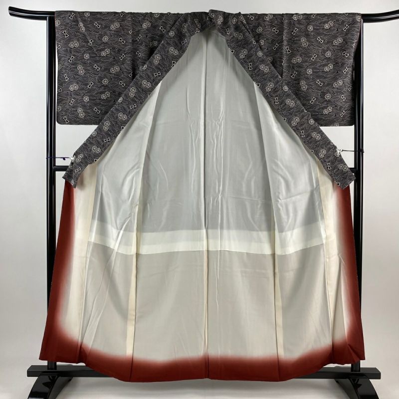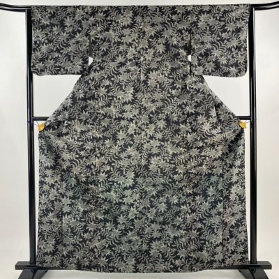 【小紋】 灰色系 黒灰 名品 A 約150cm~約159cm 裄丈65cm (M)size 袖丈49cm 4000-7980 美品 二万以下