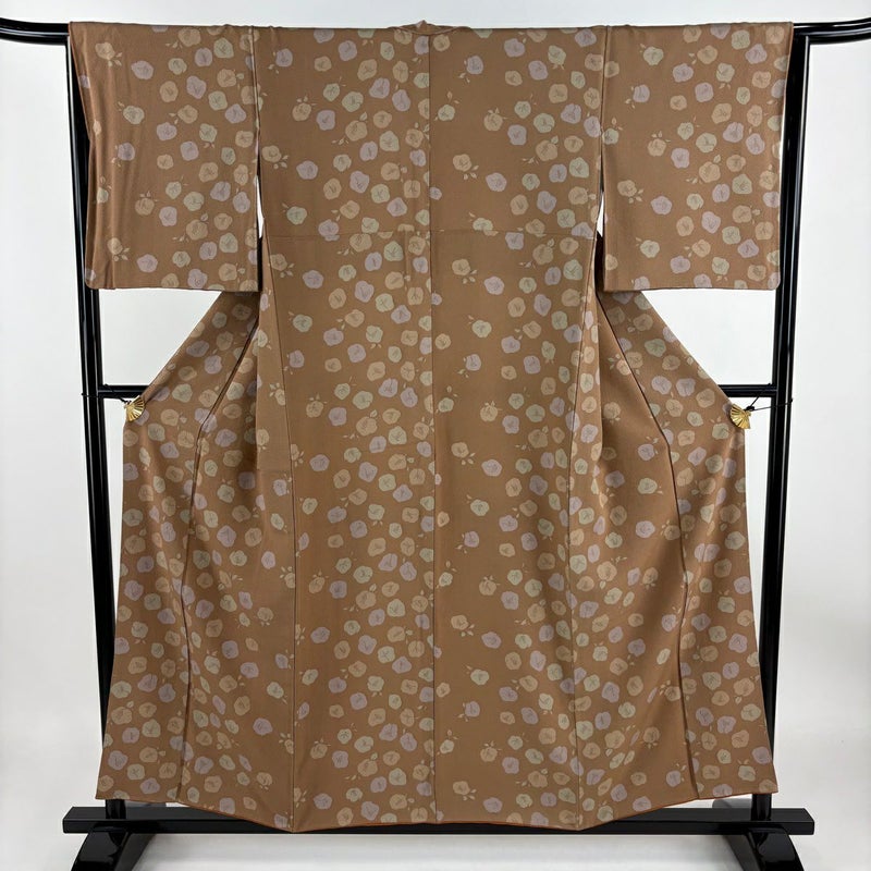【小紋】 茶系 薄茶色 秀品 A 約150cm~約159cm 裄丈63cm-64cm (M)size 袖丈49cm -3980 美品 二万以下