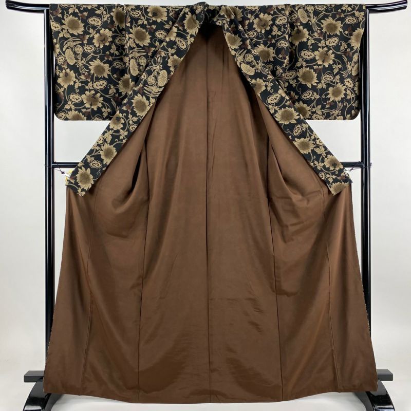 【小紋】 黒系 黒 秀品 A 約160cm~約169cm 裄丈66cm (M)size 袖丈48cm -3980 美品 二万以下
