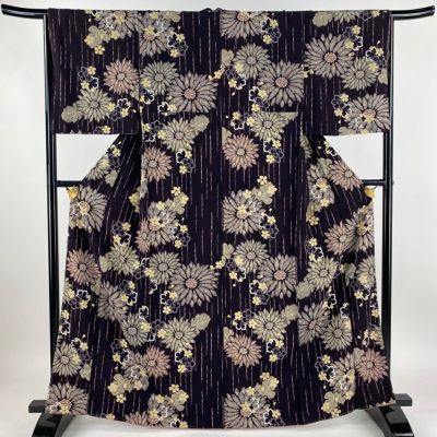 【着物ランク】秀品 【素材】化繊 【身丈】約165.5cm 【裄丈】約66.5cm 【袖丈】約48cm 【袖幅】約34cm 【前幅】約24cm 【後幅】約29.5cm 【サイズ】M 【着物仕立て】袷 【着用時期】10~5月 【状態ランク】ランクA 【着物着用シーン】気軽なパーティー、観劇、食事会、正月、気軽なお茶会、街着