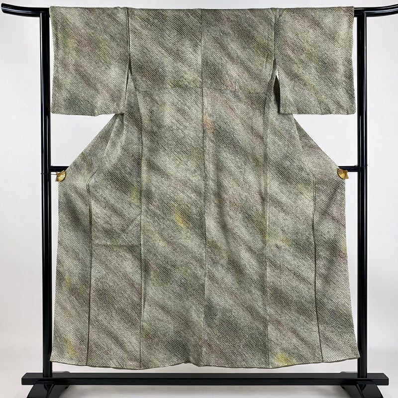 【小紋】 灰色系 灰緑 優品 A 約150cm~約159cm 裄丈63cm-64cm (S)size 袖丈47cm 4000-7980 美品 二万以下