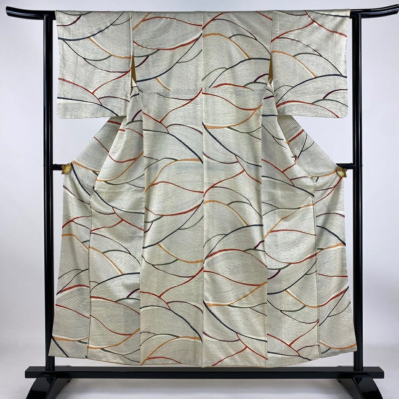 【着物ランク】優品 【素材】正絹 【身丈】約156cm 【裄丈】約61.5cm 【袖丈】約48cm 【袖幅】約31.5cm 【前幅】約23.5cm 【後幅】約28.5cm 【サイズ】S 【着物仕立て】袷 【着用時期】10~5月 【状態ランク】ランクB 【着物着用シーン】気軽なパーティー、観劇、食事会、正月、気軽なお茶会、街着