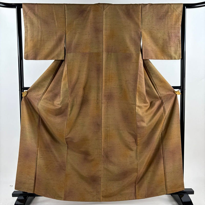 【着物ランク】秀品 【素材】正絹 【身丈】約163.5cm 【裄丈】約63cm 【袖丈】約45.5cm 【袖幅】約32.5cm 【前幅】約26.5cm 【後幅】約30cm 【サイズ】S 【着物仕立て】袷 【着用時期】10~5月 【状態ランク】ランクB 【着物着用シーン】気軽なパーティー、観劇、食事会、正月、気軽なお茶会、街着
