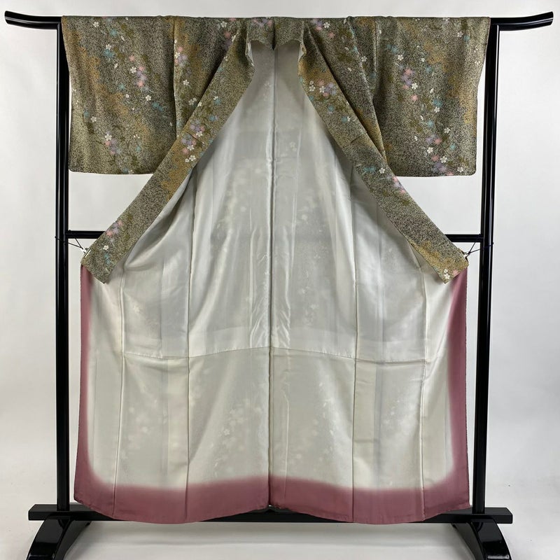 【着物ランク】優品 【素材】正絹 【身丈】約159cm 【裄丈】約64cm 【袖丈】約48.5cm 【袖幅】約34.5cm 【前幅】約23cm 【後幅】約28.5cm 【サイズ】M 【着物仕立て】袷 【着用時期】10~5月 【状態ランク】ランクA 【着物着用シーン】気軽なパーティー、観劇、食事会、正月、気軽なお茶会、街着