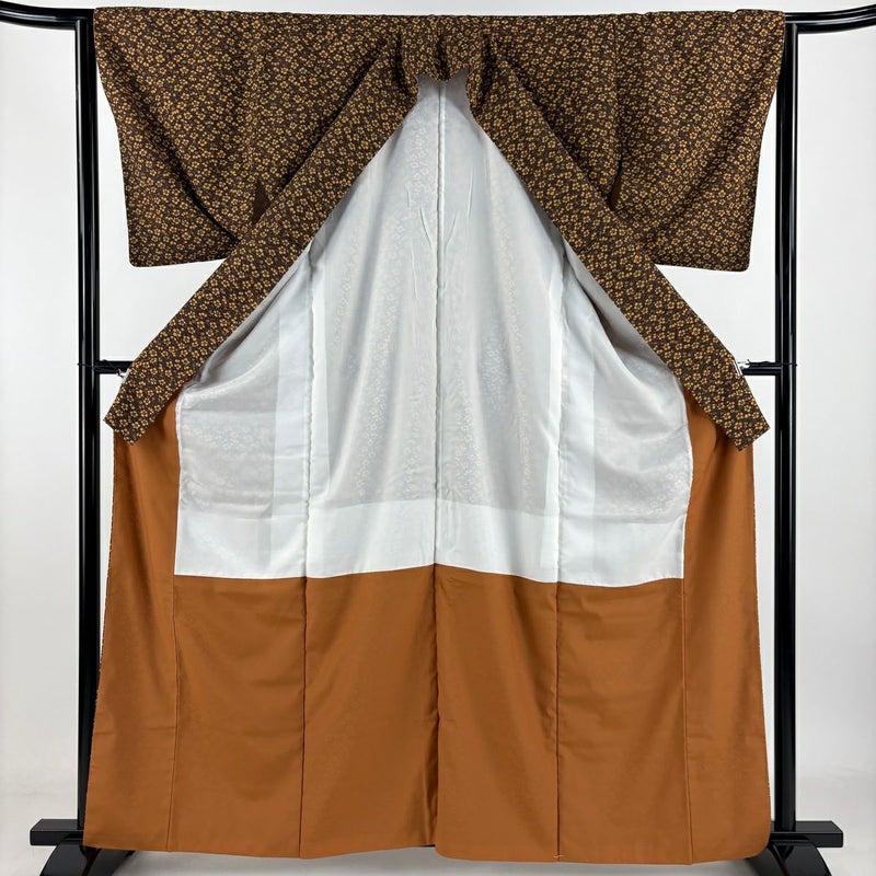 【小紋】 茶系 焦茶色 優品 B 約160cm~約169cm 裄丈63cm-64cm (S)size 袖丈49cm -3980 二万以下
