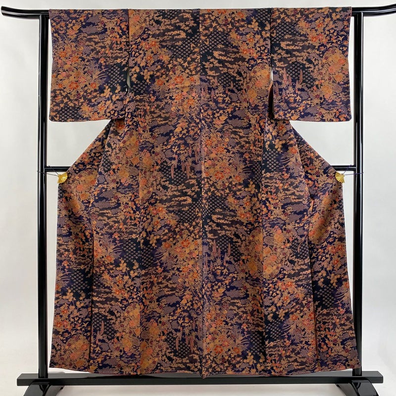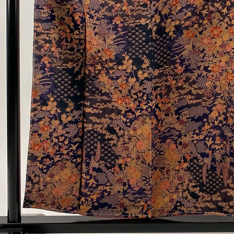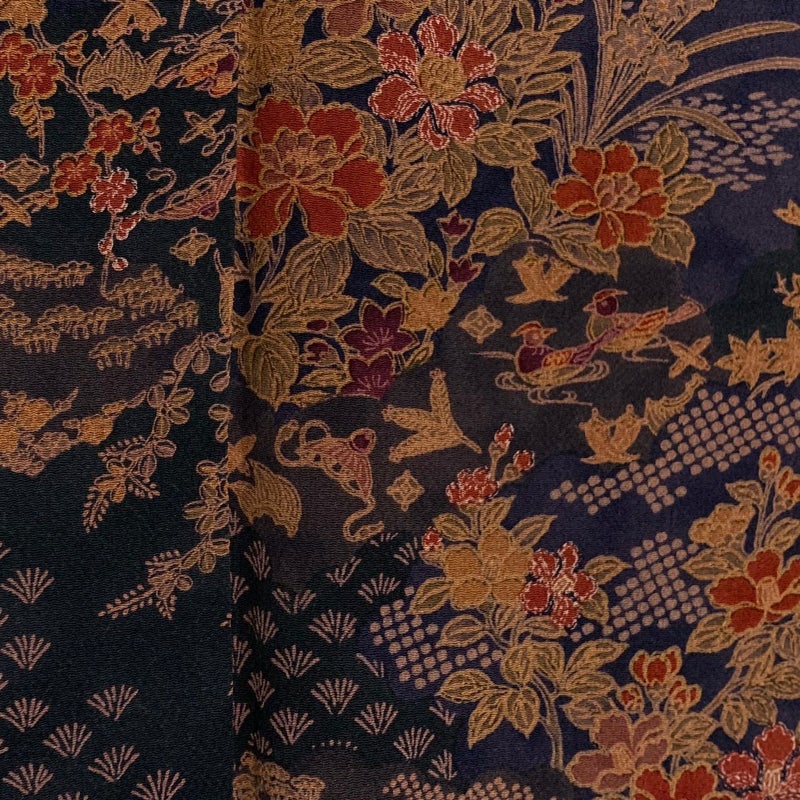 【着物ランク】優品 【素材】正絹 【身丈】約155.5cm 【裄丈】約61.5cm 【袖丈】約49.5cm 【袖幅】約32.5cm 【前幅】約22.5cm 【後幅】約30cm 【サイズ】S 【着物仕立て】袷 【着用時期】10~5月 【状態ランク】ランクA 【着物着用シーン】気軽なパーティー、観劇、食事会、正月、気軽なお茶会、街着