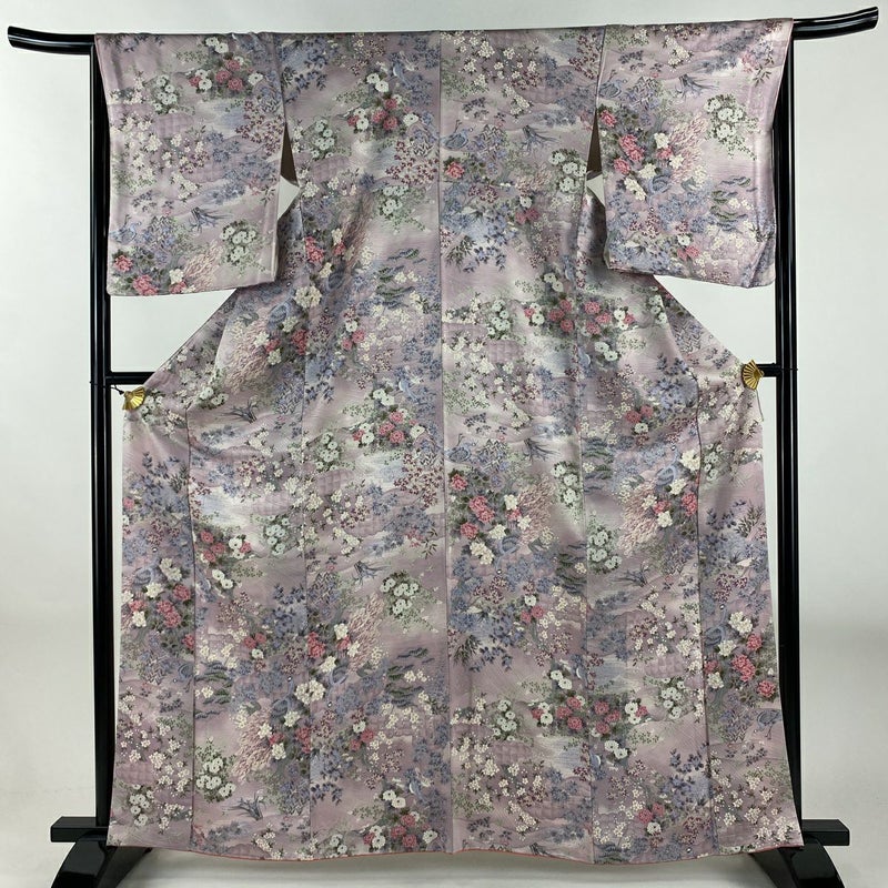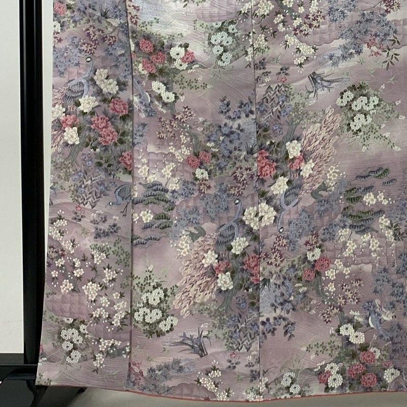 【着物ランク】優品 【素材】正絹 【身丈】約163cm 【裄丈】約66cm 【袖丈】約53cm 【袖幅】約34.5cm 【前幅】約23.5cm 【後幅】約28.5cm 【サイズ】M 【着物仕立て】袷 【着用時期】10~5月 【状態ランク】ランクA 【着物着用シーン】気軽なパーティー、観劇、食事会、正月、気軽なお茶会、街着