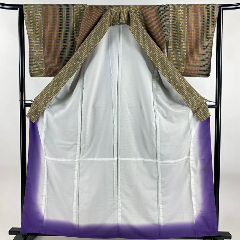 【着物ランク】秀品 【素材】化繊 【身丈】約161.5cm 【裄丈】約65.5cm 【袖丈】約48.5cm 【袖幅】約33.5cm 【前幅】約24cm 【後幅】約29.5cm 【サイズ】M 【着物仕立て】袷 【着用時期】10~5月 【状態ランク】ランクB 【着物着用シーン】気軽なパーティー、観劇、食事会、正月、気軽なお茶会、街着