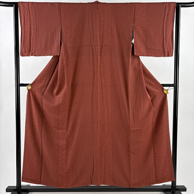【小紋】 赤系 赤茶 秀品 A 約150cm~約159cm 裄丈63cm-64cm (S)size 袖丈46cm以下 7990-9980 美品 二万以下