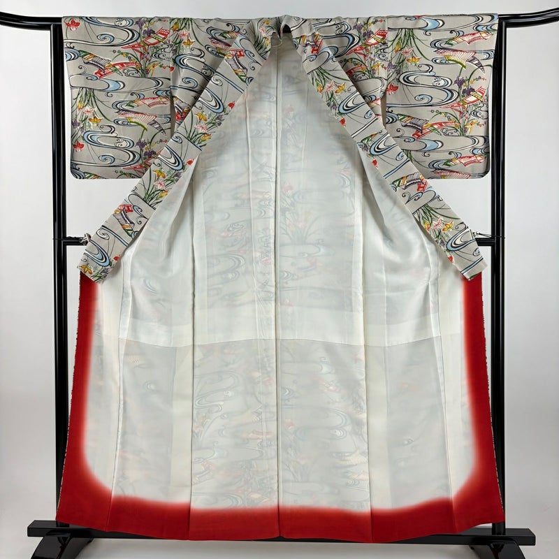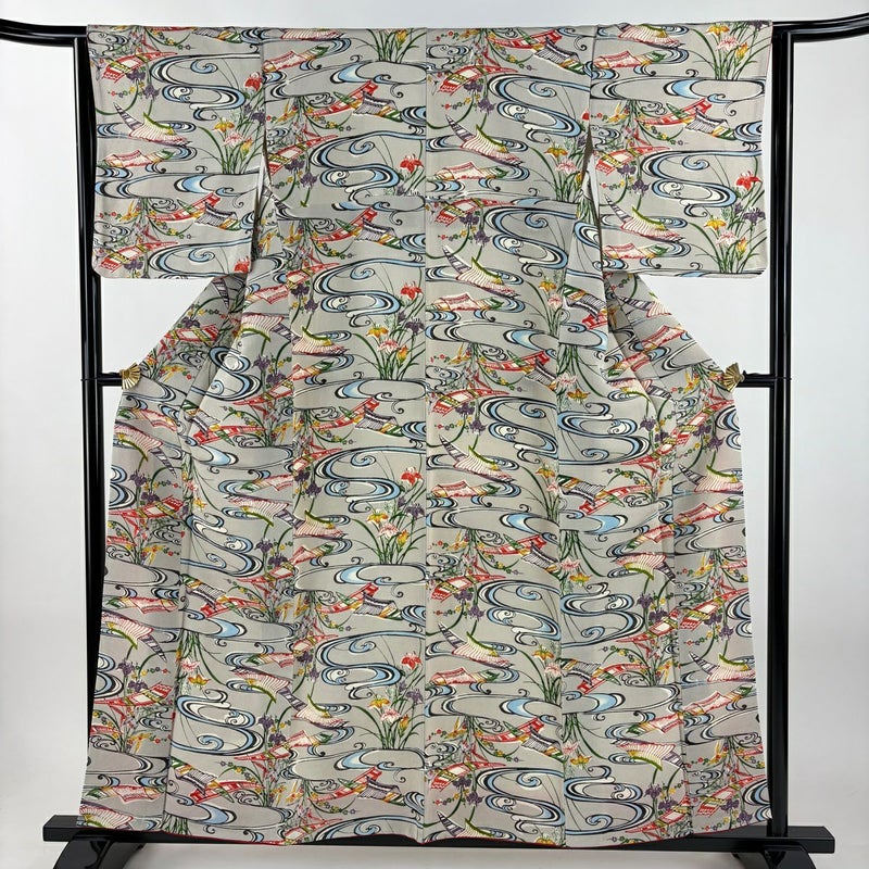 【着物ランク】名品 【素材】正絹 【身丈】約157cm 【裄丈】約65cm 【袖丈】約49cm 【袖幅】約32cm 【前幅】約25cm 【後幅】約29cm 【サイズ】M 【着物仕立て】袷 【着用時期】10~5月 【状態ランク】ランクB 【着物着用シーン】気軽なパーティー、観劇、食事会、正月、気軽なお茶会、街着