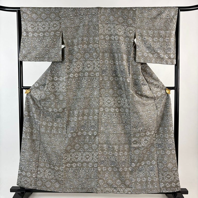 【小紋】 灰色系 灰緑 秀品 B 約160cm~約169cm 裄丈63cm-64cm (M)size 袖丈49cm 4000-7980 二万以下