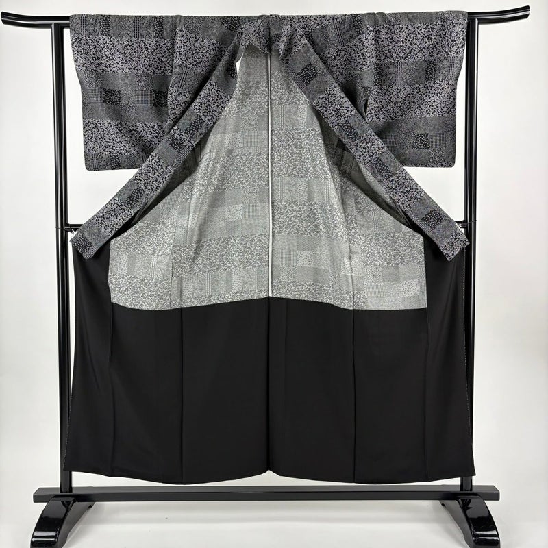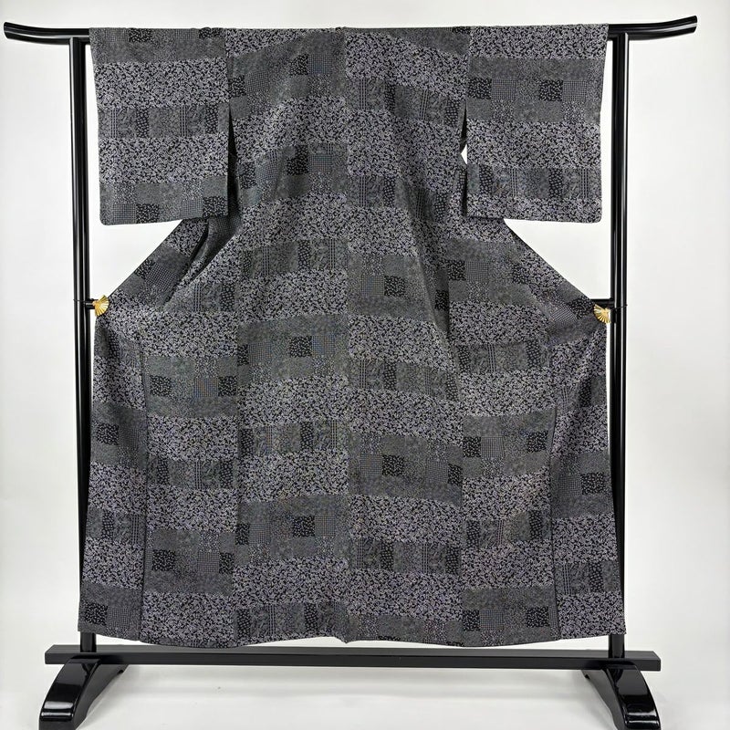 【小紋】 黒系 黒 逸品 A 約150cm~約159cm 裄丈63cm-64cm (S)size 袖丈49cm 30000- 美品 五万以下