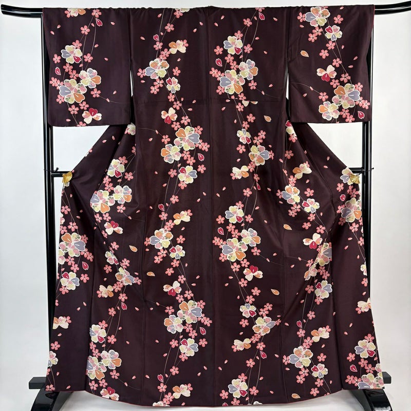 【小紋】 茶系 茶紫 優品 A 約160cm~約169cm 裄丈67cm-68cm (L)size 袖丈49cm 4000-7980 美品 二万以下