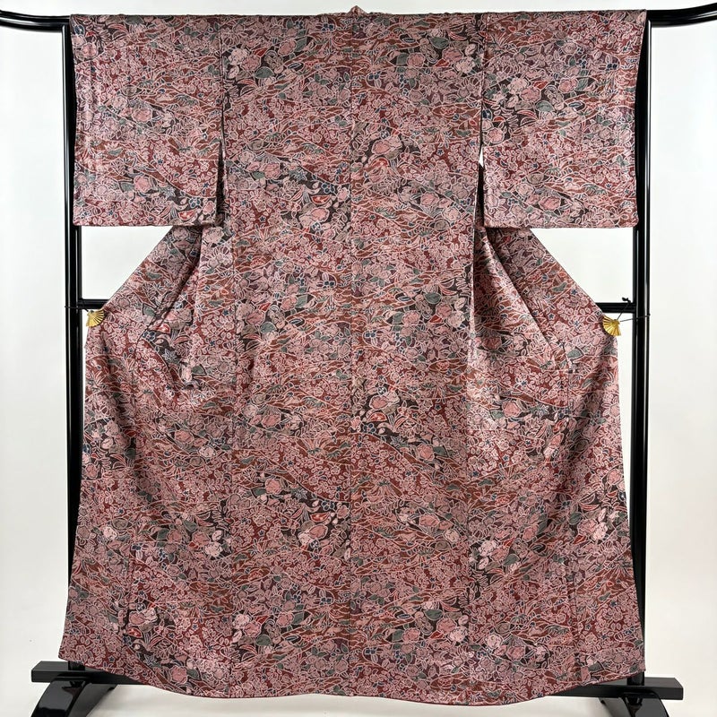 【小紋】 赤系 えんじ色 優品 A 約160cm~約169cm 裄丈65cm (M)size 袖丈50cm-60cm 4000-7980 美品 二万以下