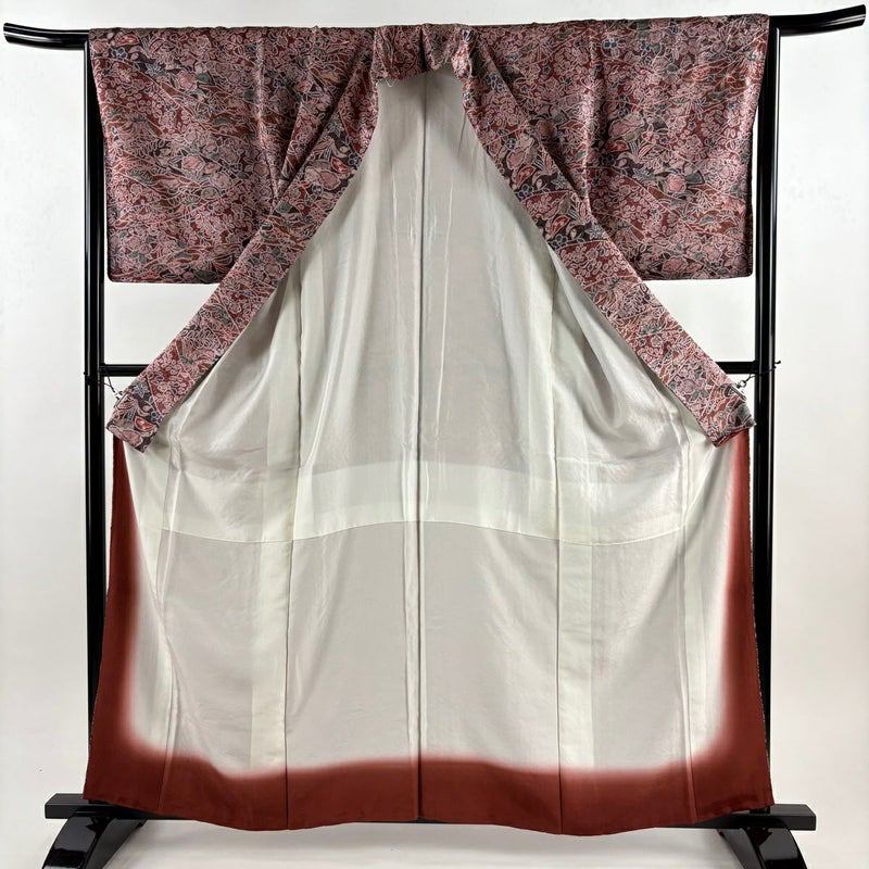 【着物ランク】優品 【素材】正絹 【身丈】約160cm 【裄丈】約65cm 【袖丈】約50cm 【袖幅】約34.5cm 【前幅】約27cm 【後幅】約28.5cm 【サイズ】M 【着物仕立て】袷 【着用時期】10~5月 【状態ランク】ランクA 【着物着用シーン】気軽なパーティー、観劇、食事会、正月、気軽なお茶会、街着