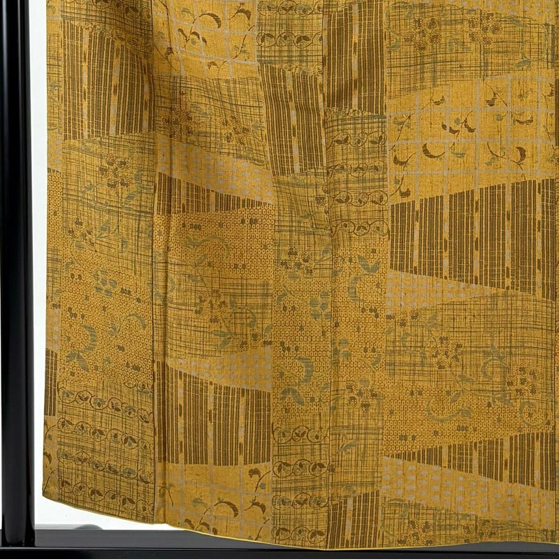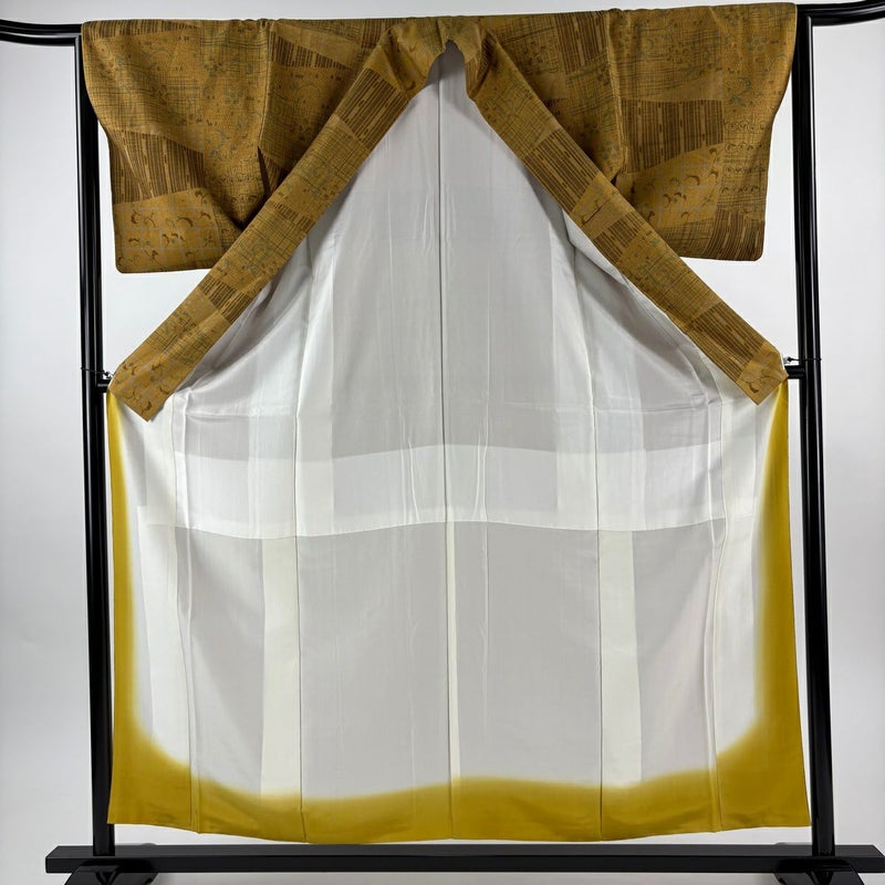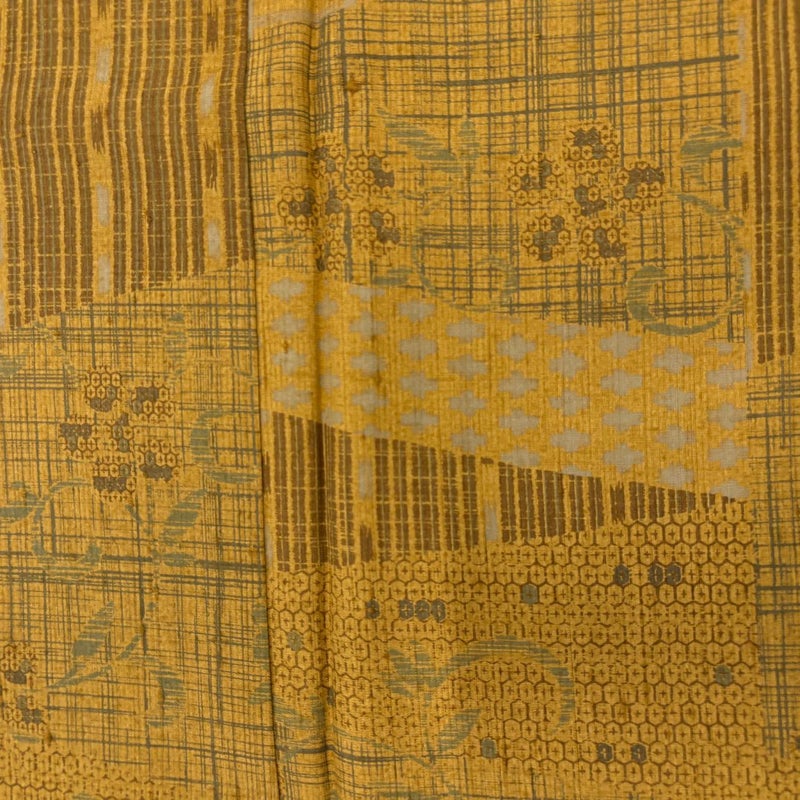【小紋】 黄色系 山吹茶色 秀品 A 約150cm~約159cm 裄丈63cm-64cm (M)size 袖丈46cm以下 7990-9980 美品 二万以下