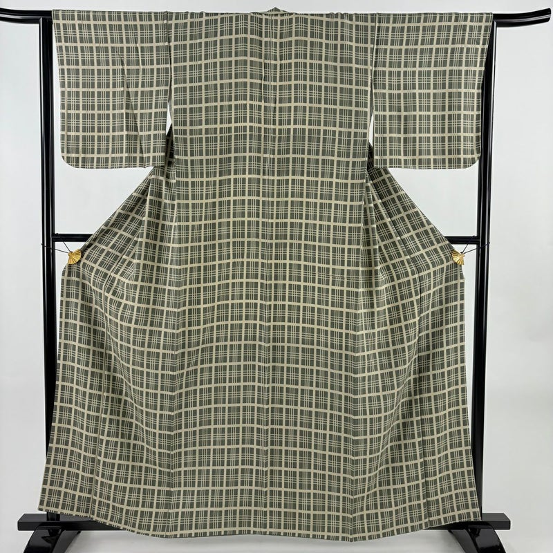 【小紋】 灰色系 灰緑 秀品 B 約160cm~約169cm 裄丈65cm (M)size 袖丈47cm 4000-7980 二万以下