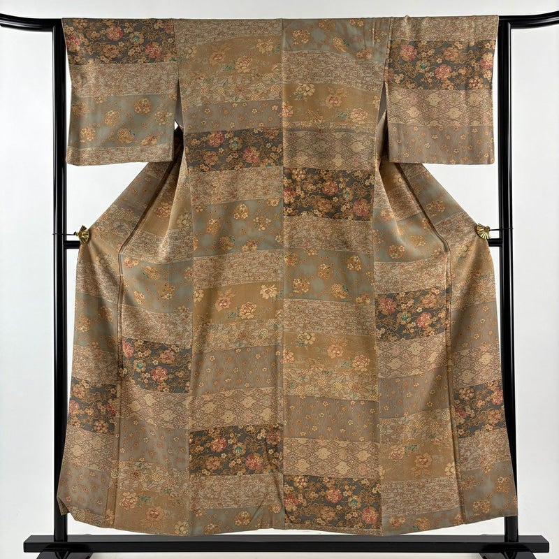 【小紋】 茶系 薄茶色 秀品 A 約150cm~約159cm 裄丈63cm-64cm (S)size 袖丈46cm以下 7990-9980 美品 二万以下