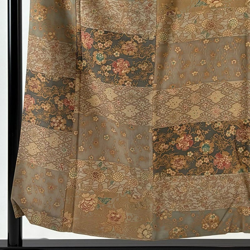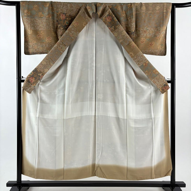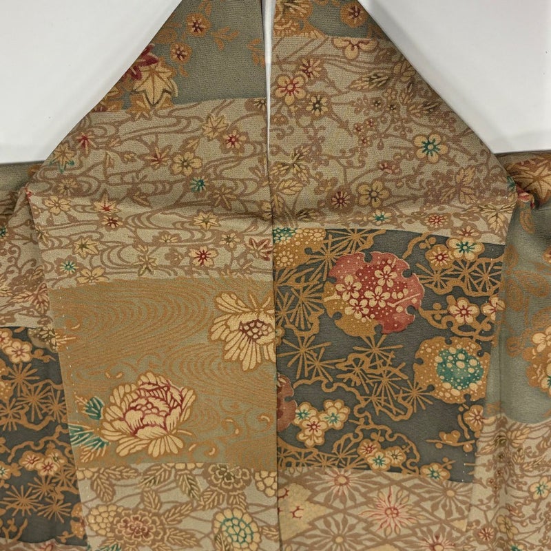 【着物ランク】秀品 【素材】正絹 【身丈】約156cm 【裄丈】約63cm 【袖丈】約45.5cm 【袖幅】約32cm 【前幅】約24cm 【後幅】約29cm 【サイズ】S 【着物仕立て】袷 【着用時期】10~5月 【状態ランク】ランクA 【着物着用シーン】気軽なパーティー、観劇、食事会、正月、気軽なお茶会、街着