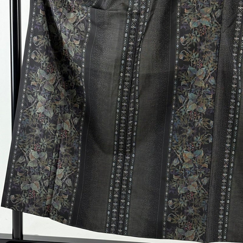【着物ランク】秀品 【素材】正絹 【身丈】約154cm 【裄丈】約66.5cm 【袖丈】約45.5cm 【袖幅】約34.5cm 【前幅】約26cm 【後幅】約30.5cm 【サイズ】M 【着物仕立て】袷 【着用時期】10~5月 【状態ランク】ランクA 【着物着用シーン】気軽なパーティー、観劇、食事会、正月、気軽なお茶会、街着