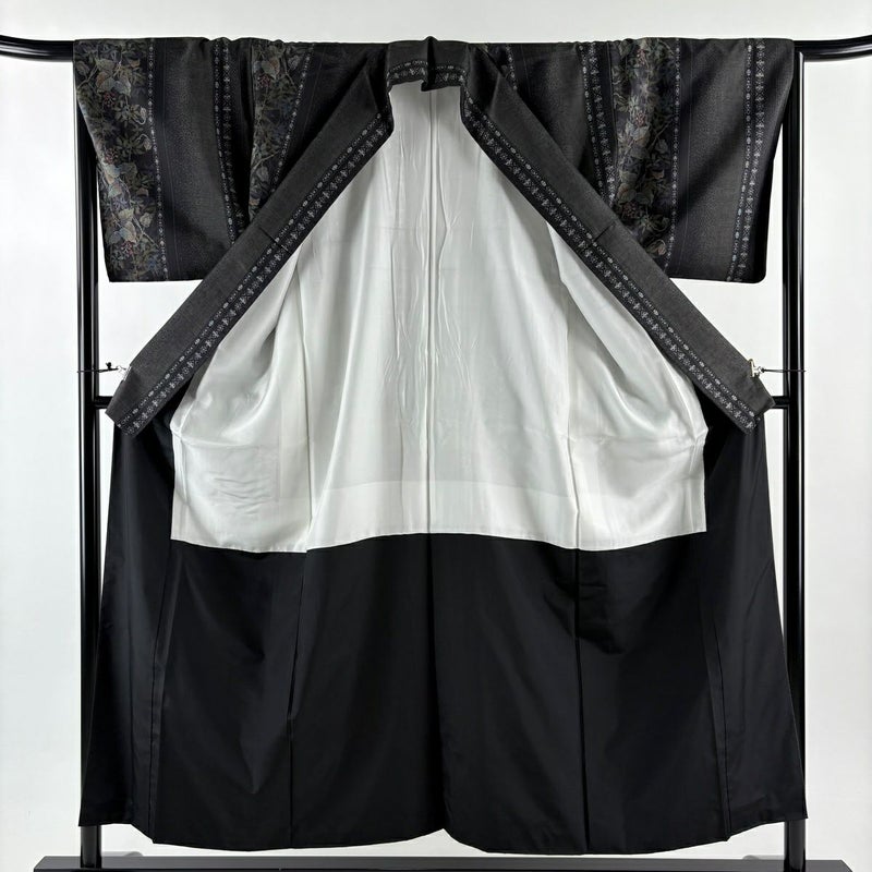 【小紋】 黒系 黒 秀品 A 約150cm~約159cm 裄丈66cm (M)size 袖丈46cm以下 7990-9980 美品 二万以下