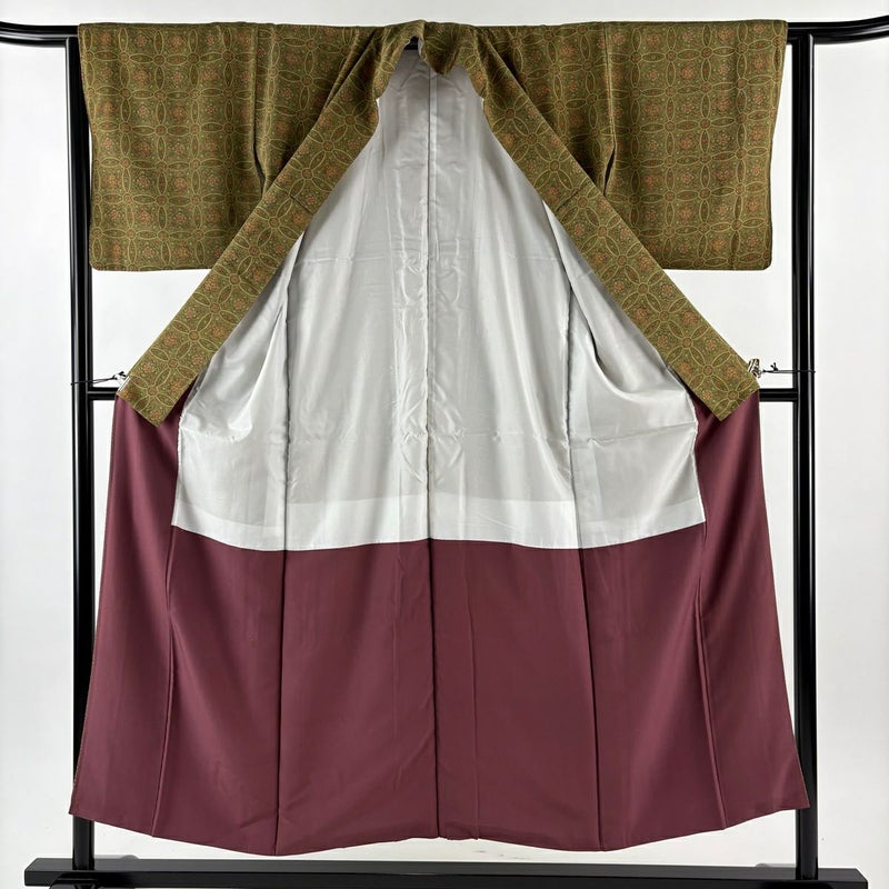 【着物ランク】優品 【素材】正絹 【身丈】約151.5cm 【裄丈】約63.5cm 【袖丈】約45cm 【袖幅】約32.5cm 【前幅】約22.5cm 【後幅】約30cm 【サイズ】S 【着物仕立て】袷 【着用時期】10~5月 【状態ランク】ランクB 【着物着用シーン】気軽なパーティー、観劇、食事会、正月、気軽なお茶会、街着