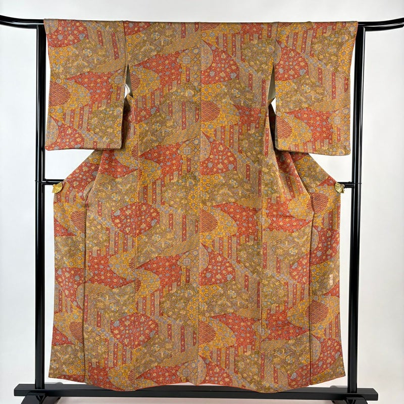 【小紋】 赤系 赤茶 秀品 A 約150cm~約159cm 裄丈63cm-64cm (S)size 袖丈50cm-60cm 7990-9980 美品 二万以下