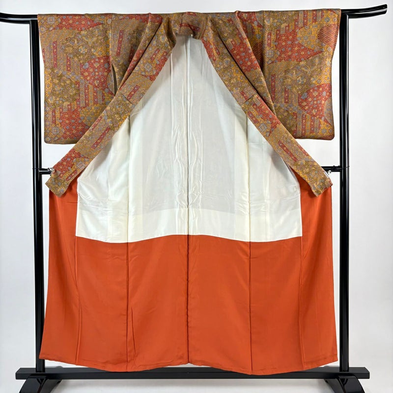 【着物ランク】秀品 【素材】正絹 【身丈】約154cm 【裄丈】約63.5cm 【袖丈】約55cm 【袖幅】約32cm 【前幅】約21cm 【後幅】約27.5cm 【サイズ】S 【着物仕立て】袷 【着用時期】10~5月 【状態ランク】ランクA 【着物着用シーン】気軽なパーティー、観劇、食事会、正月、気軽なお茶会、街着