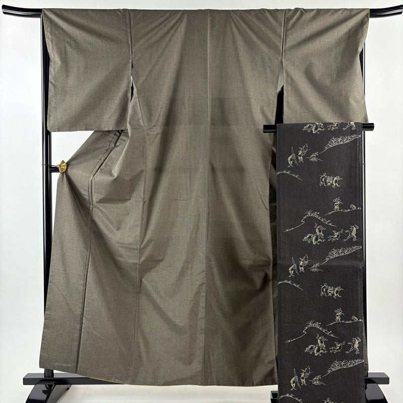 【小紋】 灰色系 灰緑 名品 A 約160cm~約169cm 裄丈67cm-68cm (L)size 袖丈50cm-60cm 30000- 美品 五万以下