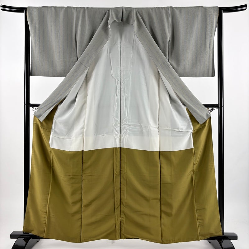【小紋】 灰色系 灰緑 名品 B 約160cm~約169cm 裄丈63cm-64cm (S)size 袖丈49cm 9990-29990 二万以下