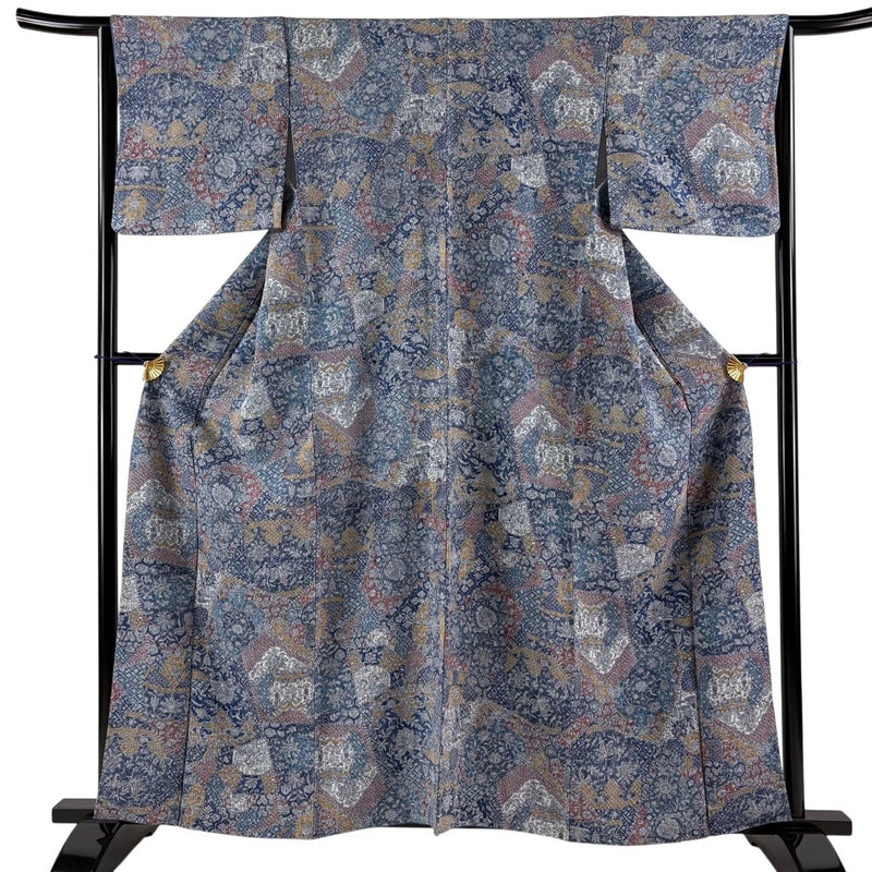 【着物ランク】優品 【素材】正絹 【身丈】約159.5cm 【裄丈】約65.5cm 【袖丈】約45.5cm 【袖幅】約33cm 【前幅】約26.5cm 【後幅】約30.5cm 【サイズ】M 【着物仕立て】袷 【着用時期】10~5月 【状態ランク】ランクB 【着物着用シーン】気軽なパーティー、観劇、食事会、正月、気軽なお茶会、街着