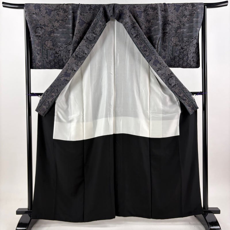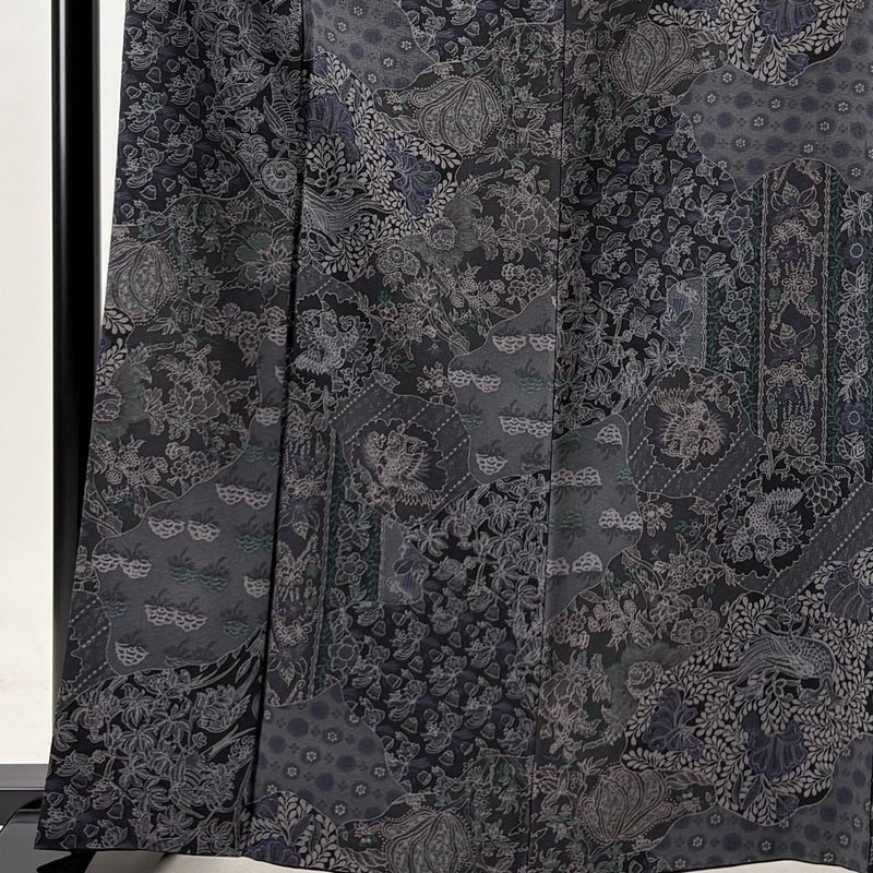 【小紋】 灰色系 黒灰 逸品 A 約160cm~約169cm 裄丈65cm (M)size 袖丈48cm 30000- 美品 五万以上