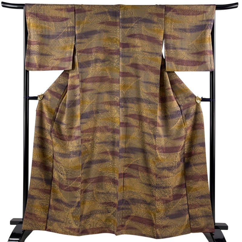 【着物ランク】逸品 【素材】正絹 【身丈】約162.5cm 【裄丈】約66cm 【袖丈】約49cm 【袖幅】約34cm 【前幅】約25cm 【後幅】約30cm 【サイズ】M 【着物仕立て】袷 【着用時期】10~5月 【状態ランク】ランクA 【作家名】前田仁仙 【着物着用シーン】気軽なパーティー、観劇、食事会、正月、気軽なお茶会、街着